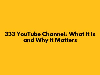 333 YouTube Channel: What It Is And Why It Matters