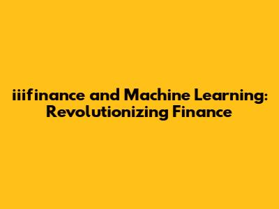 Iiifinance & Machine Learning: Revolutionizing Finance