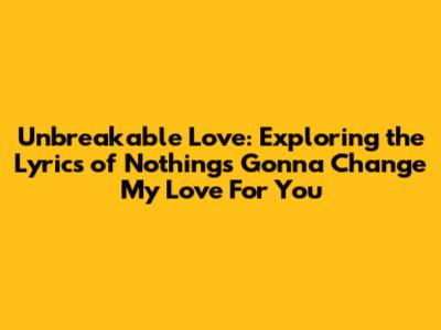 Unbreakable Love: Exploring The Lyrics Of 'Nothing's Gonna Change My Love For You'