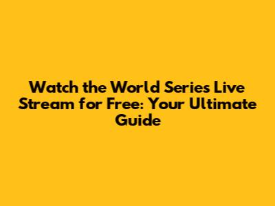 Watch The World Series Live Stream For Free